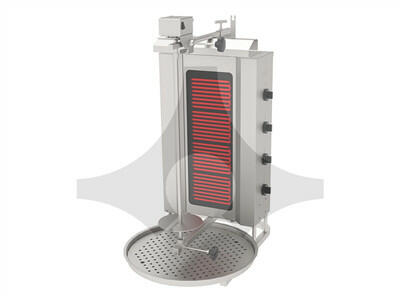 Atalay - Gyros sütő ADG-4U leírása Kiváló minőségű, rozsdamentes acél házas ipari gázüzemű gyros sütő. 4 betétes, nagy húsgyűjtő tálcával és állítható nyárssal