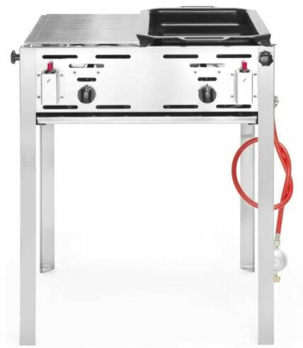 Grillezz és süss egyszerre, mint egy profi!A professzionális vendéglátás és a nagyszabású kerti események olyan megbízható és nagy teljesítményű eszközöket igényelnek, amelyek bírják az intenzív használatot. Amikor egyszerre kell többféle ételt készíteni, a hatékonyság és a sokoldalúság kulcsfontosságú a sikerhez. A HENDI Roast-Master Maxi 50/50 gázüzemű grillsütő pontosan erre a kihívásra ad professzionális választ. Ezt a kültéri használatra tervezett, robusztus készüléket úgy alkották meg, hogy a legmagasabb gasztronómiai elvárásoknak is megfeleljen, legyen szó akár egy étterem teraszáról, akár egy fesztiválról. A grillsütő legfőbb előnye a kettős sütőfelület. Az egyik oldalon egy klasszikus rozsdamentes acél grillrács található a tökéletes grillcsíkokkal ellátott húsokhoz és zöldségekhez, míg a másik oldalon egy zománcozott sütőtálca kapott helyet, amely ideális a kényesebb alapanyagok, például halak, tojás vagy apróra vágott zöldségek elkészítéséhez. A 11 kW-os teljesítmény garantálja a gyors felmelegedést és az egyenletes hőeloszlást. A tartósságról a masszív, rozsdamentes acél váz gondoskodik, amely nemcsak időtálló, de rendkívül könnyen tisztítható is, ami a professzionális konyhákban alapvető higiéniai követelmény. A kényelmes és biztonságos használatot a megbízható piezoelektromos gyújtás biztosítja, így nincs szükség gyufára vagy öngyújtóra a begyújtáshoz. A csomag tartalmazza a szükséges gáztömlőt és nyomásszabályozót is, így a gázpalack csatlakoztatása után a gázgrill azonnal üzembe helyezhető. Fektess be egy olyan eszközbe, amely növeli a konyhád hatékonyságát és kibővíti a kulináris lehetőségeidet! A HENDI Roast-Master Maxi egy megbízható partner a kültéri sütésben. Főbb előnyök