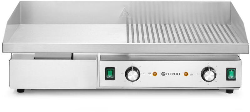 Dupla felület, dupla lehetőség: a profi konyhák svájci bicskája!Egy forgalmas professzionális konyhában a megbízhatóság és a sokoldalúság kulcsfontosságú. Amikor egyszerre kell többféle ételt készíteni, minden másodperc számít, és elengedhetetlen egy olyan berendezés, ami bírja a terhelést és alkalmazkodik az igényekhez. Pontosan erre a kihívásra ad választ a HENDI Budget Line termékcsaládjának félig sima, félig bordázott sütőlapja, amely egyetlen eszközben egyesíti két különböző sütőfelület előnyeit. A készülék robusztus, rozsdamentes acél házzal rendelkezik, amely garantálja a tartósságot és a könnyű tisztíthatóságot. A szívét egy masszív, 10 mm vastagságú edzett acél sütőlap adja, ami kiválóan tartja és egyenletesen osztja el a hőt. A magasított peremek fröccsenés elleni védelmet nyújtanak, a kivehető zsírgyűjtő fiók pedig a higiénikus munkavégzést segíti elő, így a takarítás a műszak végén gyors és egyszerű. A valódi ereje a két, egymástól függetlenül szabályozható fűtőzónában rejlik. Ez lehetővé teszi, hogy a sima felületen alacsonyabb hőfokon készíts például tükörtojást vagy zöldségeket, miközben a bordázott részen magas hőmérsékleten pirítod a szaftos steakeket, látványos grillcsíkokat hagyva a húson. A 4400 W-os teljesítménynek köszönhetően a HENDI sütőlap gyorsan eléri a beállított hőmérsékletet – ami akár 300 °C is lehet –, és stabilan tartja azt még folyamatos használat mellett is. A biztonságos működésről a túlmelegedés elleni védelem és a csúszásmentes lábak gondoskodnak. Ez a gasztro berendezés egy rendkívül hatékony és helytakarékos megoldás éttermek, büfék és nagykonyhák számára, amely növeli a termelékenységet és állandó, kiváló minőségű eredményt biztosít. A HENDI sütőlap egy olyan befektetés, amely a megbízhatóságával és sokoldalúságával gyorsan megtérül. Főbb előnyök